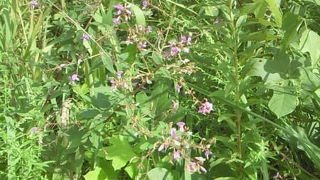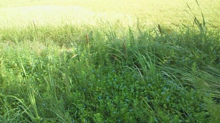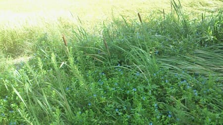 4.雑草の生い茂った草むら、荒れ果てた地。