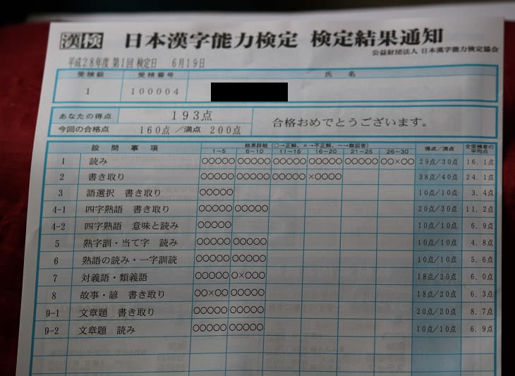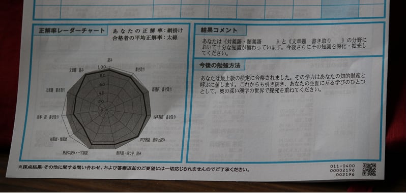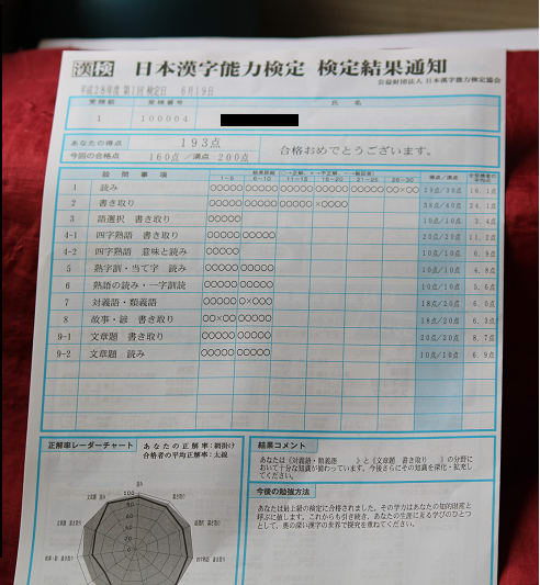 ●結果通知が来ると、漢検さんの思惑どおり、出来そうもないと思われた所を悉く出来なかったことにあらためて悔しさが募る・・・