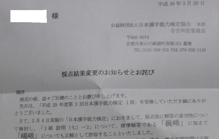 ●何の手紙かと思ったら、招待状でも段位認定でもなんでもなかった・・・採点結果変更通知だった・・・