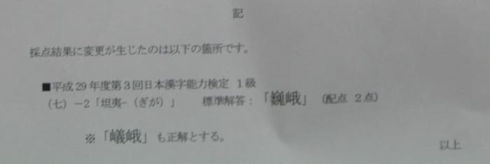 ●前回の“惷愚”ほど騒がれていなかったと思うけど、採点委員会ってのはよく見てるんだなあ・・・それとも、得点上位者の答案は念入りに調べてんのかあ(苦笑)これはちょっと“痛し痒し”ってところがあるな、特にトメハネクズシなんか、よく見られると、コマる(苦笑)
