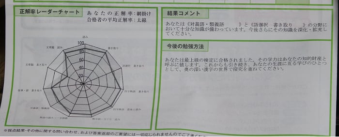 ●チャートと結果コメントも変更になってら・・・<対義語・類義語>がこれで満点になったからか・・・