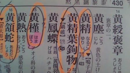 ●ついでに、大漢和の本熟語の近辺にあった「黄蕈(コウジン)」・・・しめじたけ。きしめじ。これは当て字・熟字訓というより、音読みで出るかも・・・以前(過去問で)、「・・・蕈(ジン、シン)」を読ませる問題が出ましたね。要・留意。